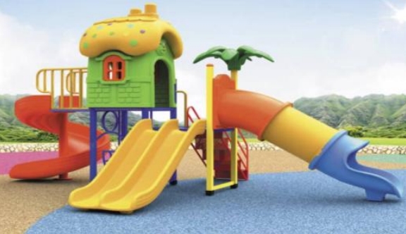 2.พื้นดิน ใช้แผ่นคอนกรีตยึดสําเร็จรูปกับเครื่องเล่น